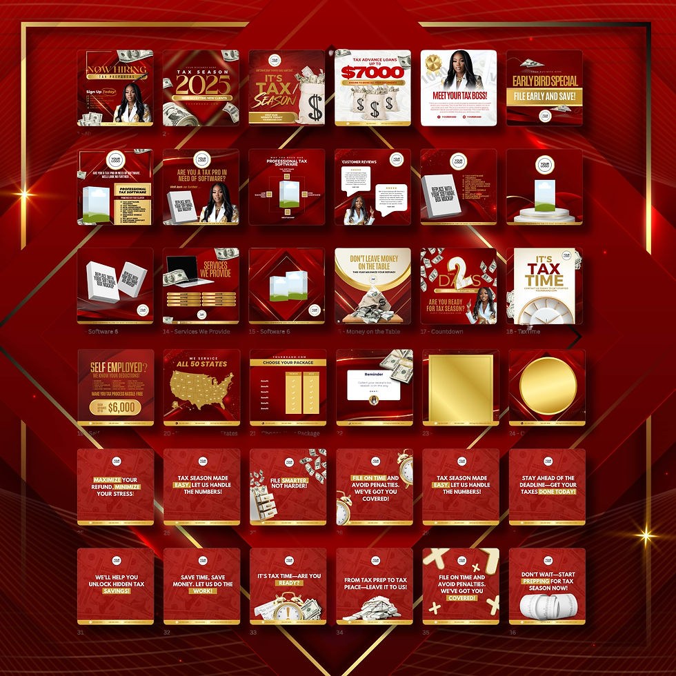 Elevate your tax brand this upcoming season with standout visuals and professional design solutions! Whether you're looking to enhance your social media presence, create eye-catching marketing materials, or establish a polished, cohesive brand identity, we’ve got you covered. Our expert design team at Phyl Graphics specializes in crafting high-quality, custom graphics tailored specifically for tax professionals. Make your brand unforgettable and stand out from the competition with sleek, impactful visuals that resonate with your audience. Get ready to take your tax business to the next level this season!